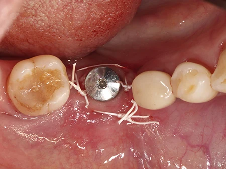 インプラントを埋入した状態。骨の外側からインプラントの一部がはみ出しています。